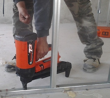 The T3MAG has electronically controlled fuel injection which reads temperature and humidity, allowing for the perfect shot each time. The tool boasts a wide working temperature range and is capable of shooting between zero to 110 F, an important consideration to Gary Eatinger, president of Performance Drywall of Arizona. The medium-sized commercial steel stud framing and drywall contractor is based in Gilbert, which is located in the Phoenix metro-area.