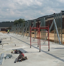 | Ken Truesdale of Collins & Wright prefers using the Ramset T3MAG on large projects such as this job at Methodist Manor in Florence, South Carolina. Truesdale said the company recently completed work on a 24-story high-rise in Myrtle Beach using the four same T3MAG tools on 60,000 square-feet of framing. “We did the entire job of two million shots with those four guns. The project took a year to complete and we only took off 38 days.” |