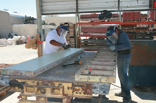 | Hub employees recondition concrete forms in one of Hub's San Bernadino yards. Being part of an ESOP company give employees a sense of ownership, pride in their work and increases their dedication to the company and to working toward its success. |