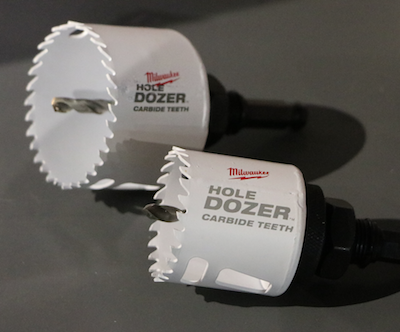 Armed with the Hole Dozer with Carbide Teeth users can cut easily in high speed through Nail Embedded Wood, Stainless Steel, Cement board, Fiberglass and Plaster. Maintaining the thermoset coating applied to the Milwaukee bi-metal hole saws, the new Hole Dozer with Carbide Teeth hole saws will experience reduced friction and drag during cutting.