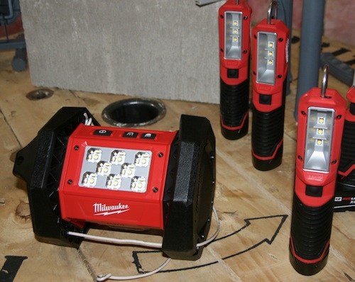 Milwaukee is stepping up to the switch with some interesting LED lighting products as well, including a magnetic mechanics lamp and a barrel-shaped, virtually indestructible job site floodlight. It features eight powerful (and cool-running) LEDs in bounce-proof shell that can be angled up from a floor or hung any number of ways from hooks or string lines for day-bright lighting virtually anywhere.