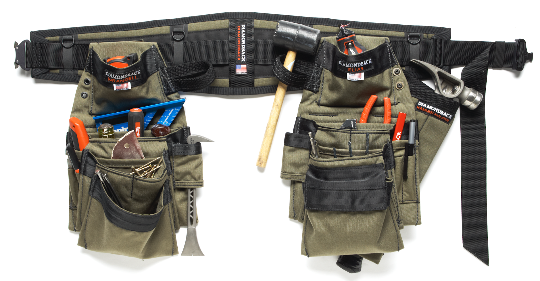 Diamondback Toolbelts are the most durable, comfortable, and versatile tool belts for professional tradesmen. They are built with only the best materials and components available. Tool pouches and belts are made from heavyweight American-made Cordura brand nylon and webbing.