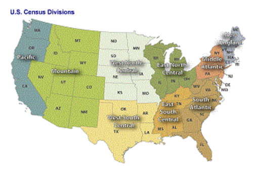 The downloadable data is available for a selected U.S. Census Division or for the entire United States. Additionally, historical datasets are available for each year between 2014 and 2018.